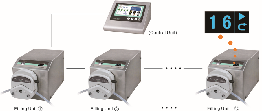 Das Füllsystem kann mit einem Steuergerät bis zu 16 Peristaltikpumpen steuern.